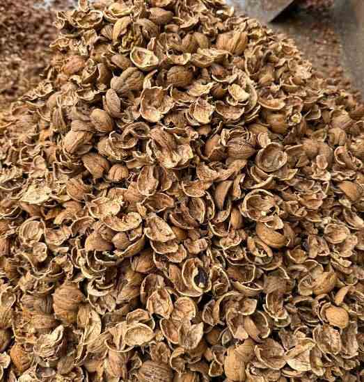 Cáscara de nuez triturada de calidad para biomasa, combustible, sustrato hortícola y aplicaciones industriales. Suministro B2B en España. Producto sostenible de valorización de residuos orgánicos. Solicita presupuesto.